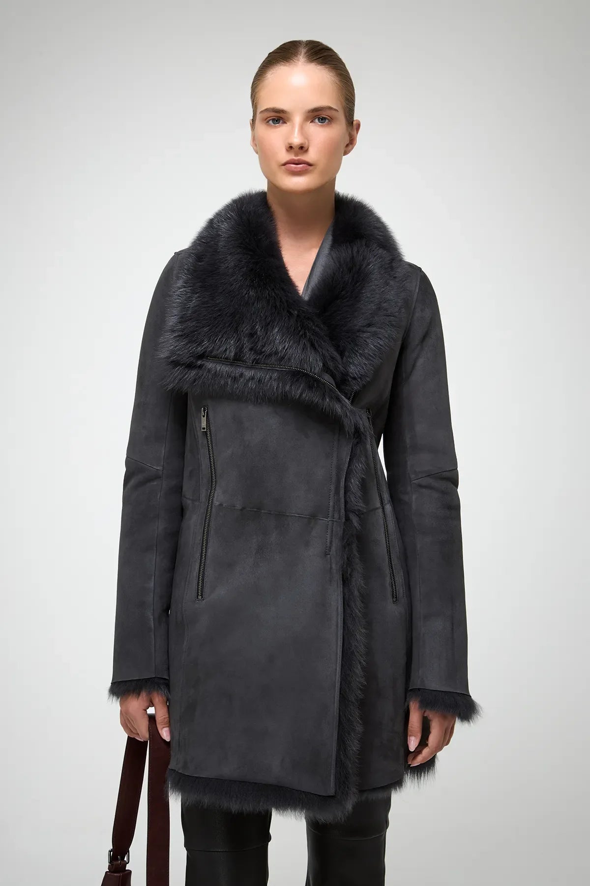 Kristell – Anthrazitfarbener Lammfellmantel