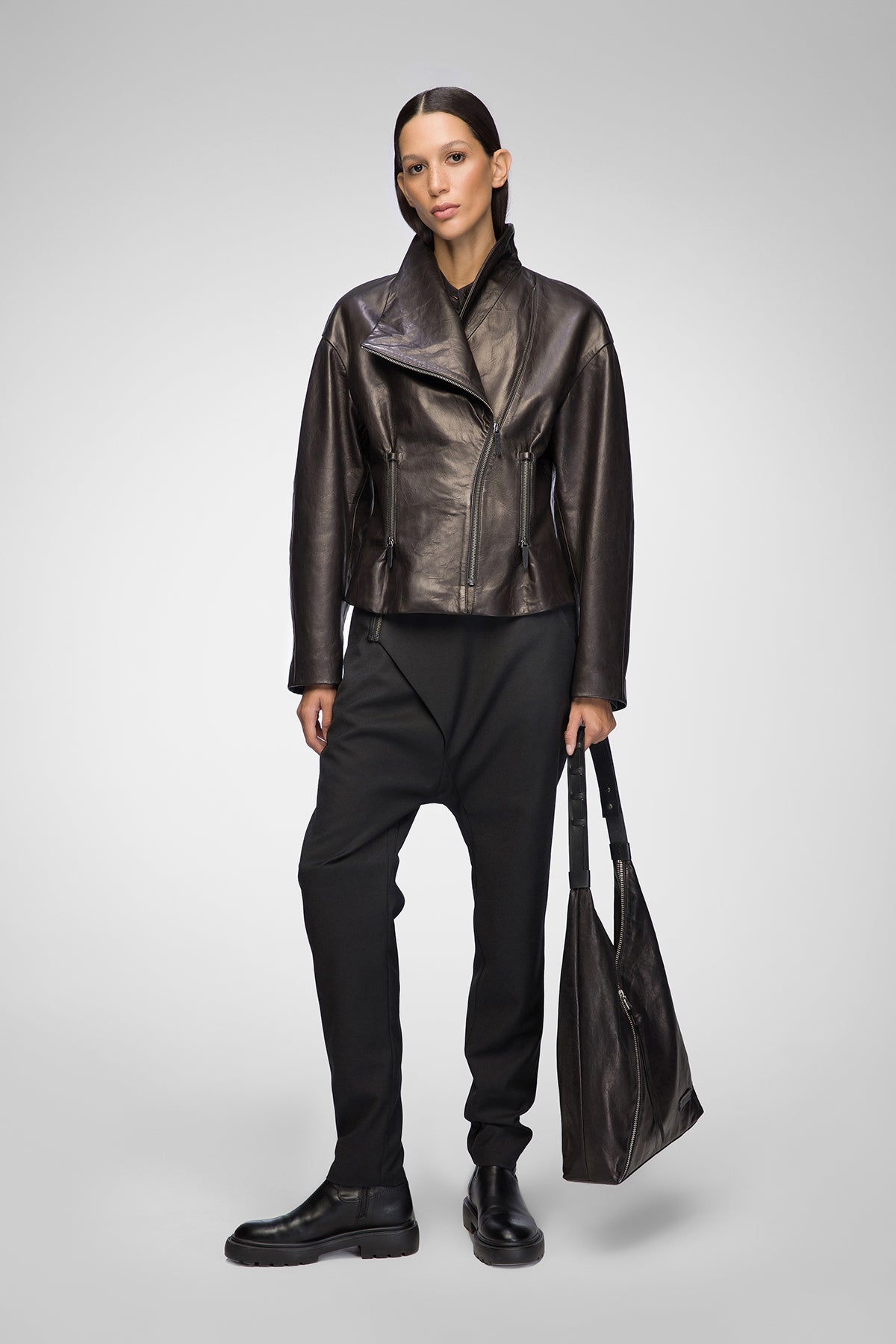 Kurze Lederjacke mit taillierter Passform. Mit asymmetrischem Reißverschluss und seitlichen Reißverschlusstaschen für einen klassischen Biker-Look.